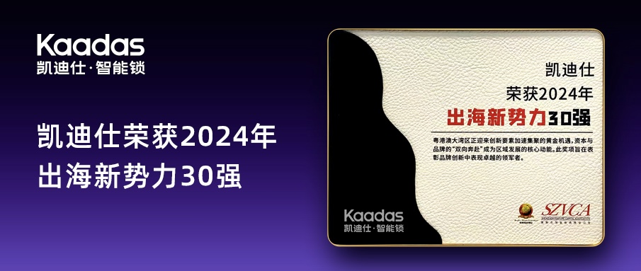 凱迪仕智能鎖榮獲“2024年出海新勢力30強”,以創(chuàng)新科技領(lǐng)航全球化征程!